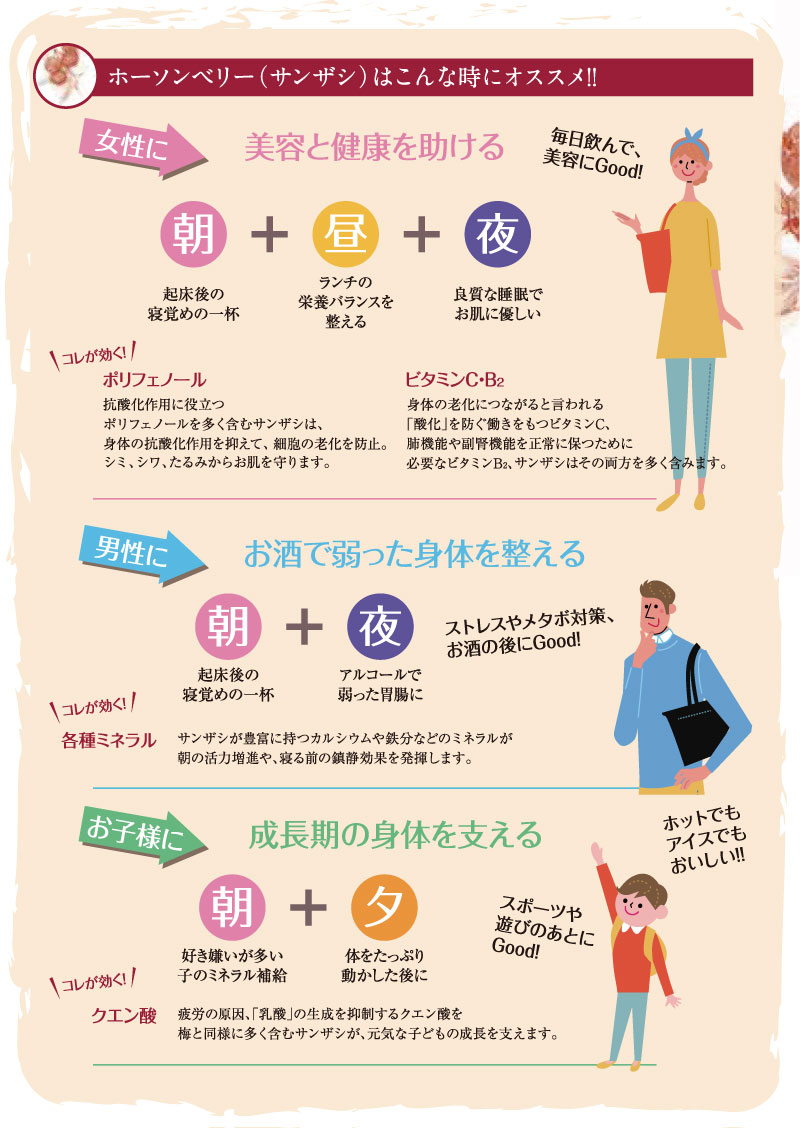 美容と健康に、おいしいから続けられる。 世界中で愛される機能性果実「ホーソンベリー(サンザシ)」 無農薬手摘みサンザシ果汁を使用した濃密濃厚ドリンクです。